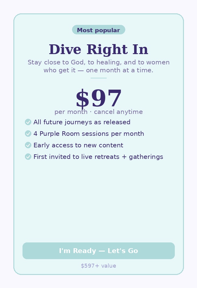 Included are two Purple Room Sessions—intentional spaces for community where you can share and process what you’re learning, making the journey even more powerful together.